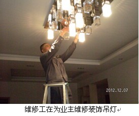 2012年12月1日—31日西郡兰庭物业服务中心开展了历时一个月的为业主免费特约维修服务活动,共计为业主维修服务54户,维修服务涉及了室内照明、给排水管道疏通、门窗门锁、以及日常家用器具等多方面维修内容。