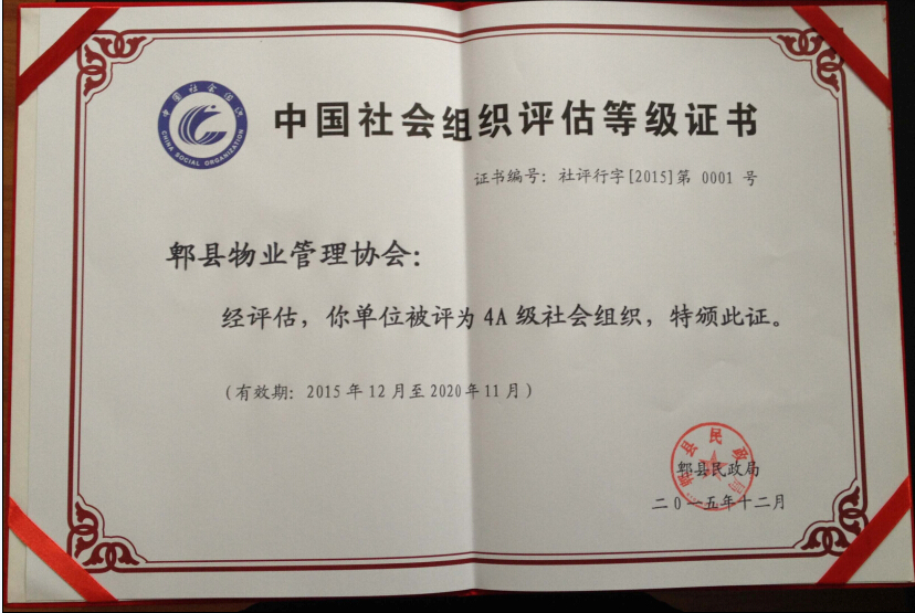为加强协会内部管理,完善协会内部管理机制,我会积极参与由县民政局牵头的社会团体等级评估活动。协会从5月接到通知开始报名,6月到8月准备相关资料文件,9月参加初评,11月改善完成工作。由县民政局、会计师事务所、律师事务工作人员组成的考核团队,对我会进行等级评估。通过此次评估,协会重新整理了自协会成立至今的所有资料,并按照规范将档案进行分册建档管理,得到了民政局和主管部门的认可。12月荣获郫县民政局颁发的4A社会组织等级证书和牌匾。