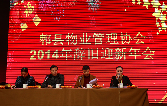 为凝聚行业力量,推动物业管理创新发展,全面提升郫县物业管理水平,规范各物业企业服务行为,郫县物业管理协会于2015年2月4日(星期三)15:00在郫县印象泰和园·千禧大厅召开辞旧迎新年会。郫县房管局物管科科长魏劲松、副科长许霞及协会会长汪茂志、秘书长钟燕出席会议,物业协会副会长、常务理事及会员单位负责人、郫县物业管理专家、年会演出人员参加了会议。