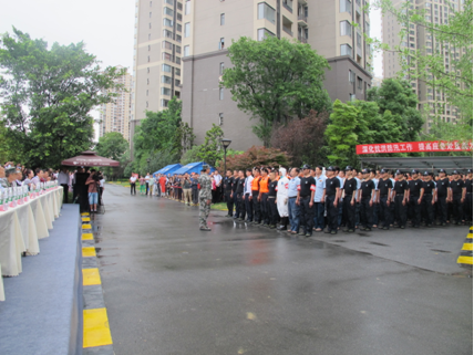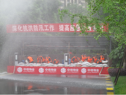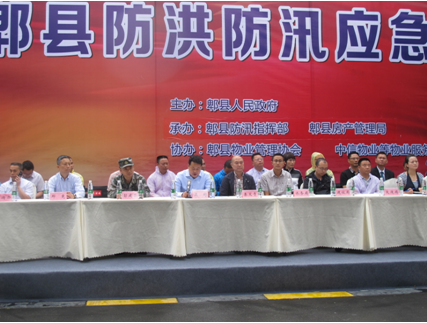 为进一步提升全县防汛抢险救灾能力和应急处置能力,增强群众防灾避险意识,5月21日,由郫县人民政府主办,郫县防汛指挥部、郫县房产管理局承办的“2015年郫县防洪防汛应急演练”在“中信未来城”南区举行。各物业服务企业法人(负责人)、各物业区域项目经理和应急抢险队伍共420余人参加了此次演练。县委常委、县人武部部长彭建荣,县人大副主任邱竞,县政府副县长吴彬,县政协副主席秦发贵出席活动,政府办、应急办、安监局、民政局、交通局、公安局、消防大队等各级防汛指挥部成员单位领导及相关人员现场观摩。