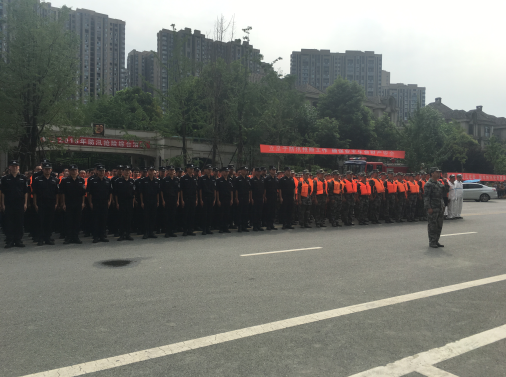 7月12日,按照县政府常务会工作安排部署,县房管局组织物业服务企业在“绿地国际花都”小区参加郫县2016年防汛抢险综合演练。县委副书记、县长杨东升,县委常委、县人武部部长彭建荣,县政府副县长冯胜,县政府副县长张涛等领导到场观摩指导。