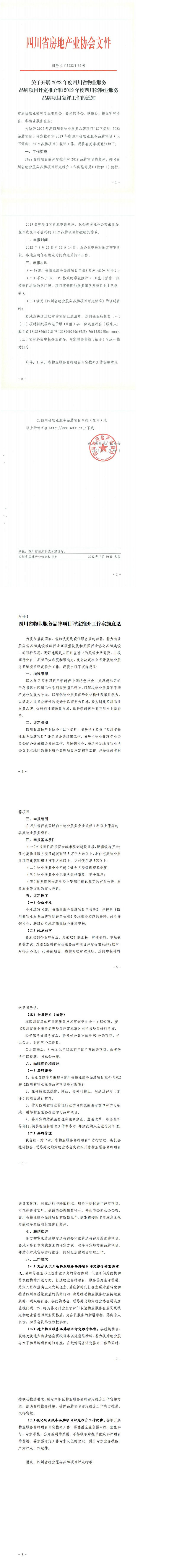 关于开展2022年度四川省物业服务品牌项目评定推介和2019年度四川省物业服务品牌项目复评工作的通知