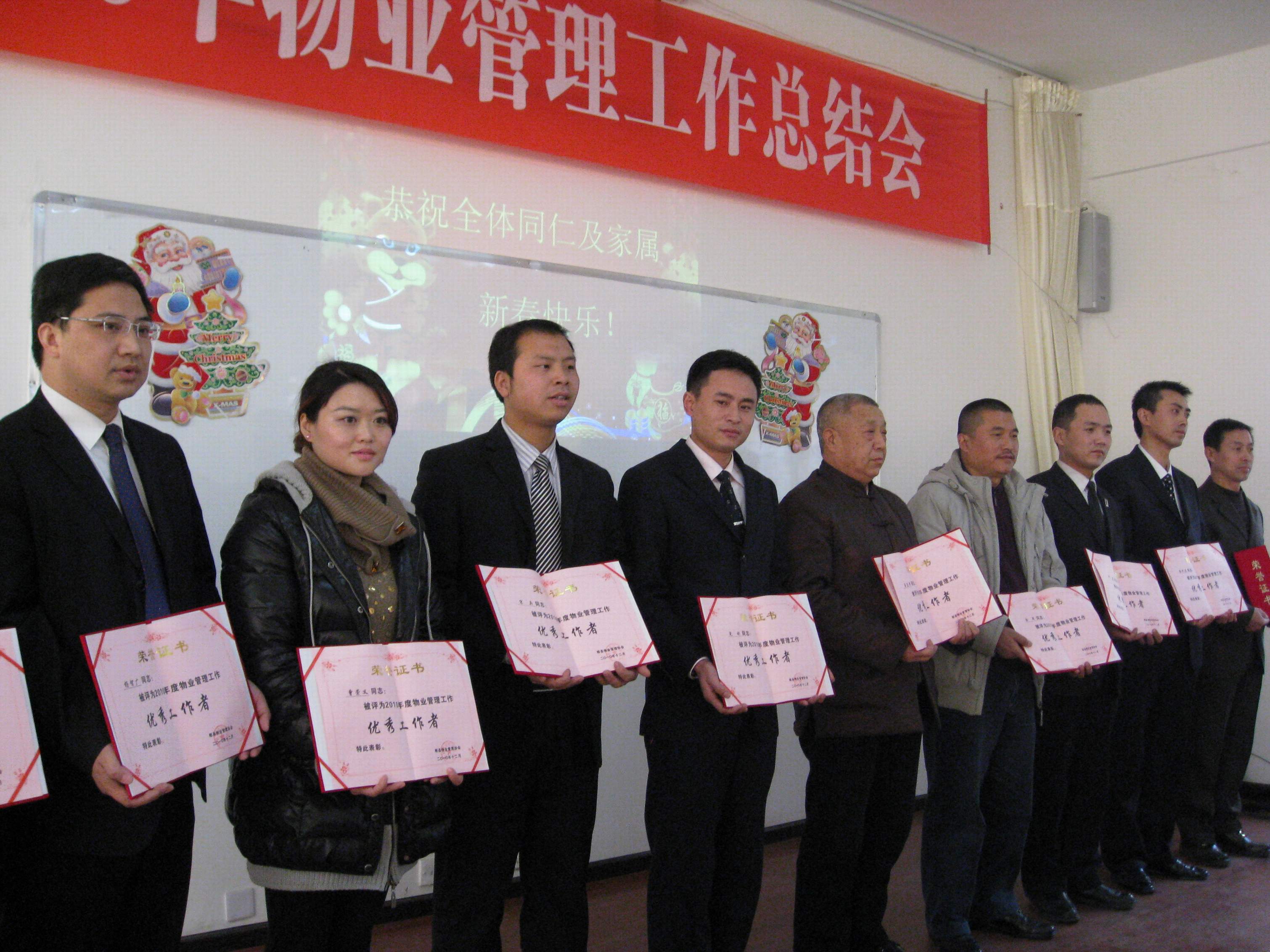 会议宣读了《郫县物业管理协会关于表彰2010年度物业管理工作优秀单位和优秀工作者的通报》,并为成都洁华物业管理有限公司等10家物业管理工作成绩优异的优秀单位、邱建等12名物业管理工作成绩显著的优秀个人颁发荣誉证书和奖牌。