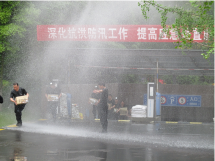 此次演练模拟我县突发强降雨,致使某物业管理小区地下室积水形成内涝,严重威胁到小区居民生命财产安全。防汛指挥部在接到险情后,立即启动防汛抢险应急预案,各级抢险队快速响应,迅速调集抢险车辆和应急物资,组织居民撤离转移,有效的避免了人员伤亡和群众财产损失。