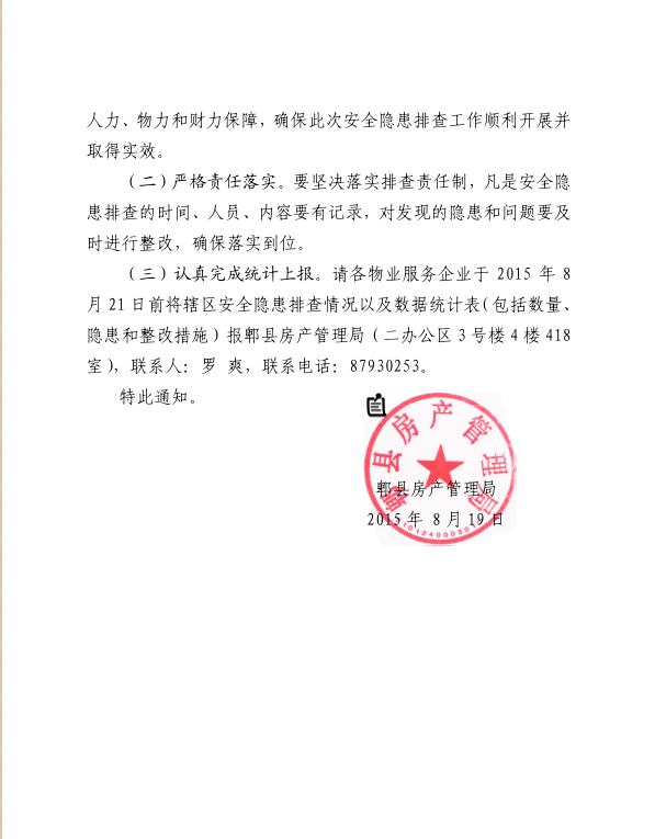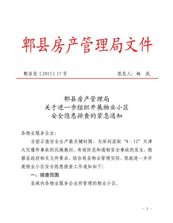 郫县房产管理局关于进一步组织开展物业小区安全隐患排查的紧急通知